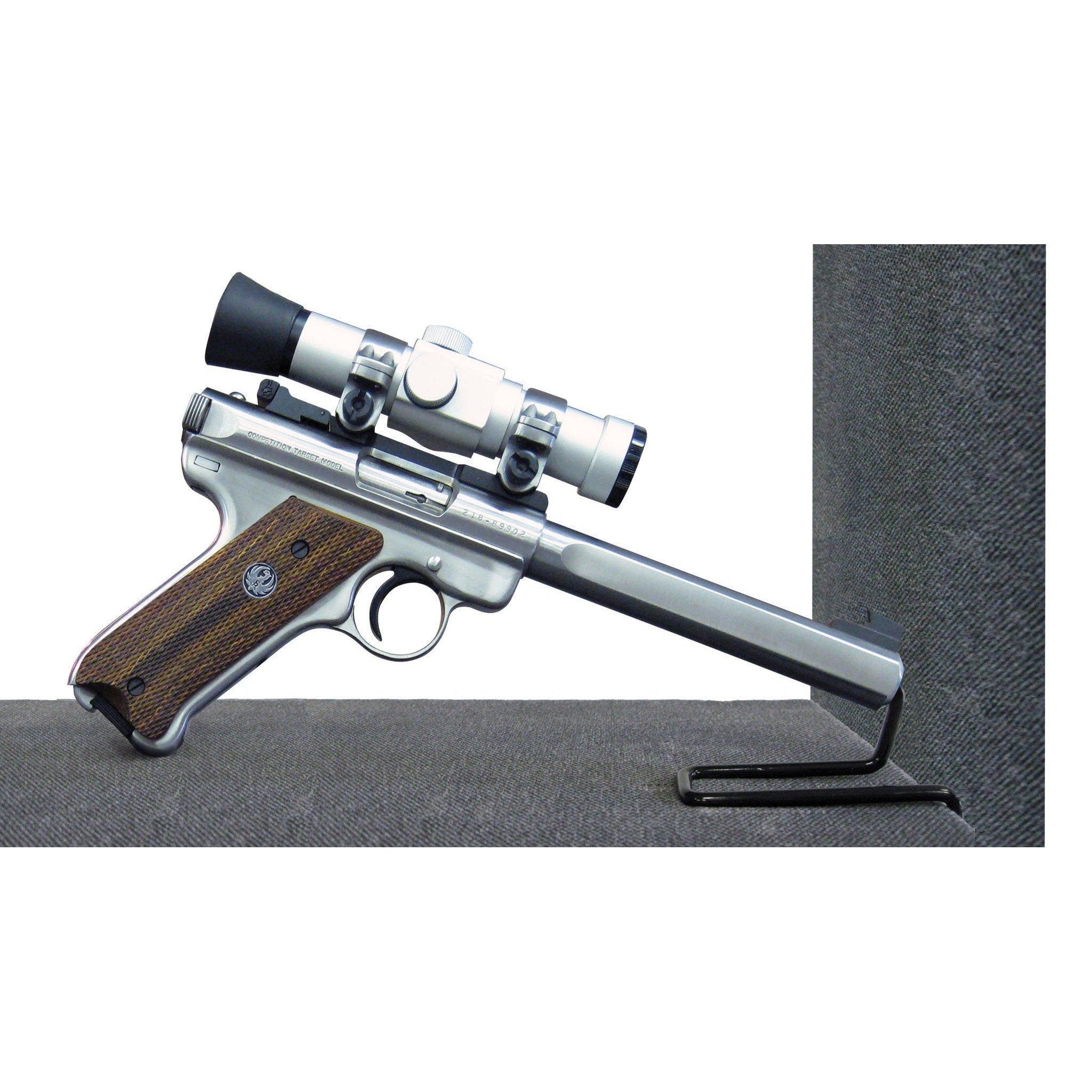 Handgun Hangers are an innovative gun storage solution for your handguns to utilize the least used space in your safe-under the shelves. Vinyl coated finish protects barrels. Best of all, now you will have quick access to your handguns and save space in an efficient way.